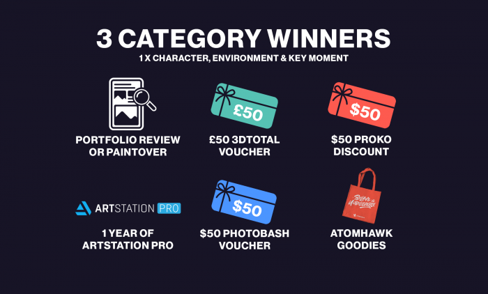 CATEGORY WINNERS (1 x Character winner, 1 x Environment winner & 1 x Key Moment winner)