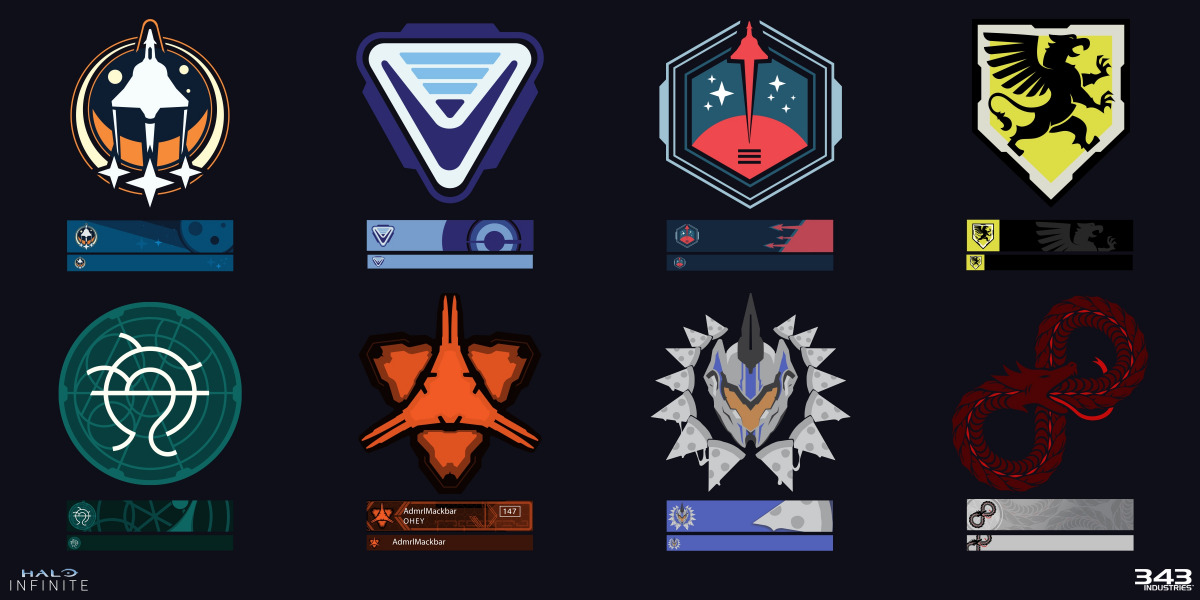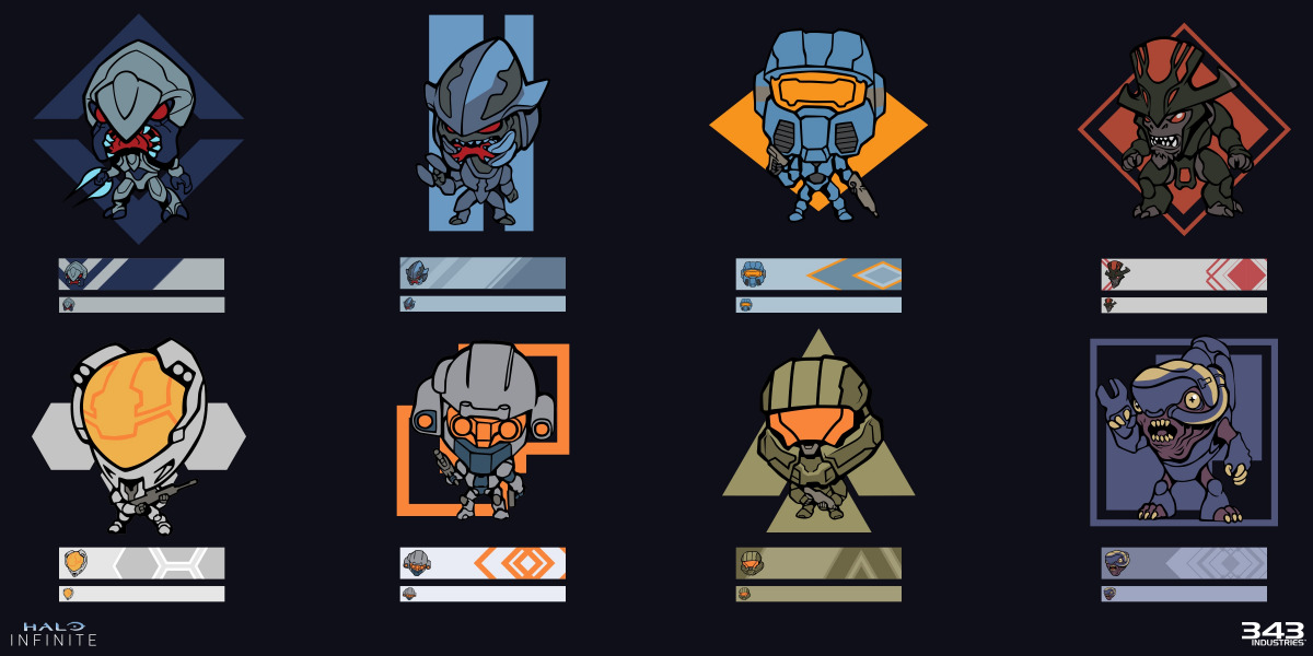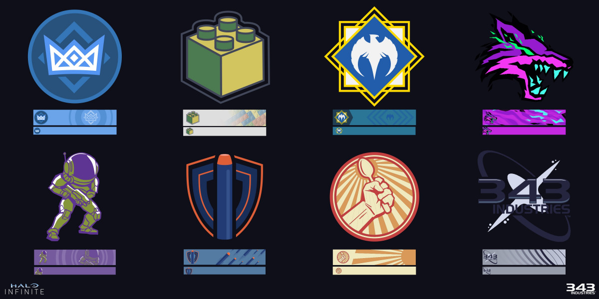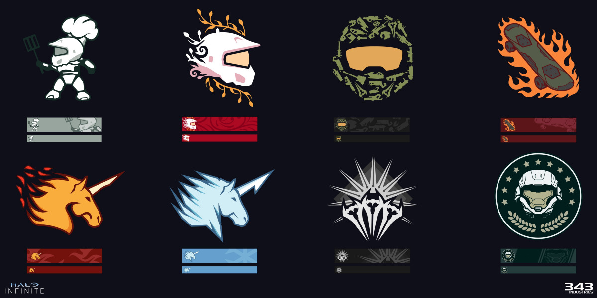 The creation of over 450 ready-to-use UI assets including medals, icons, emblems, backdrops and nameplates for launch and to release over time with Halo’s ongoing seasons. Each one is an absolute original, but each is connected to game lore, wider popular culture, or both.
