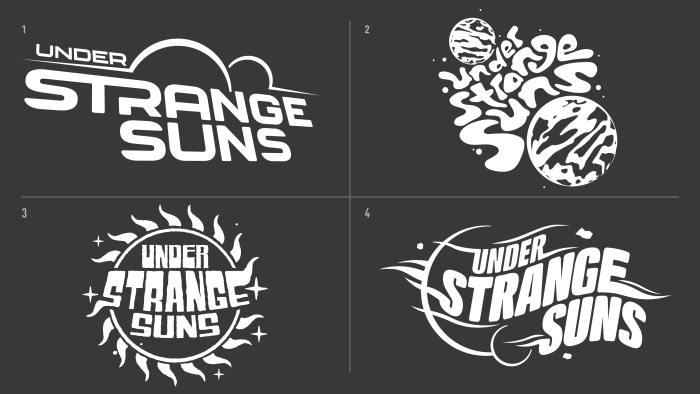 The logo is an important part of the art competition. This year’s theme is Under Strange Suns. A logo helps set the scene both visually and narratively, providing an inspirational touchpoint, which is really important for entrants so we work hard to get it right. This year, our Graphic Designers Dan Gilmore and Lewis Wagstaff teamed up to create the Under Strange Suns logo. Here, they explain how they did it.